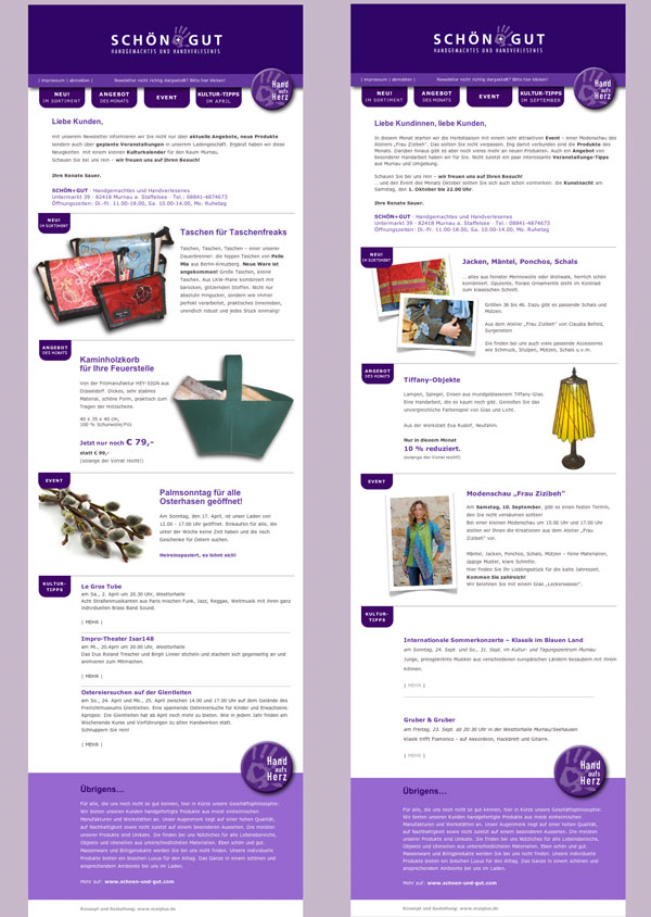 Zusatznutzen für die kunstinteressierte Zielgruppe von SCHÖN+GUT: ein Kulturkalender für Murnau und Umgebung Ein Service, der vom User gerne angenommen wurde. Durch den Versand eines externen Dienstleisters wurde auch ein Response-Controlling kostengünstig integriert.