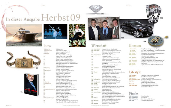 Neues Design für das Schweizer Uhrenmagazin Tourbillon. Die Druck-vorbereitung war ebenfalls Bestand des Auftrags. In Zusammenarbeit mit der Münchner Agentur nakami-lounge.